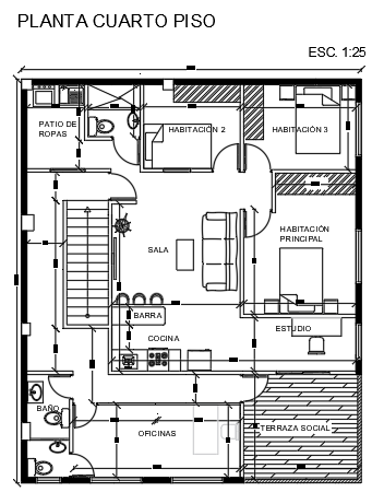 Planimetría y fachada cuarto piso, edificio Diego M.