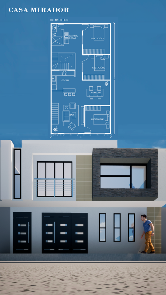 Ampliacíon segundo piso y fachadas, Casa Mirador